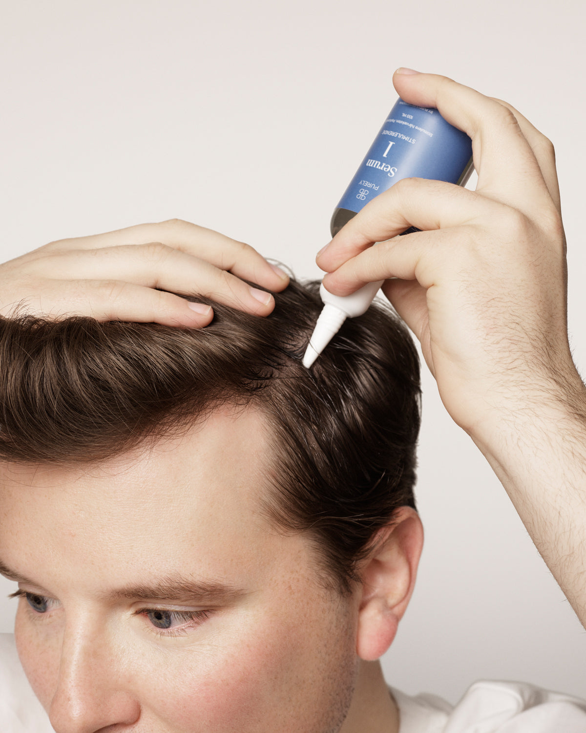 For intensiv stimulering af hårvæksten anbefaler vi, at du plejer din hovedbund med Serum 1, der indeholder de aktive ingredienser curcuma longa og niacinamid. Curcuma longa er et planteekstrakt, fremstillet fra rødderne af gurkemeje. Serummet stimulerer og plejer hovedbunden, og kan bruges til alle hårtyper. Serum 1 masseres ind i hovedbunden inden sengetid, så curcuma longa ekstraktet har tid til at virke natten over. Bør bruges dagligt.