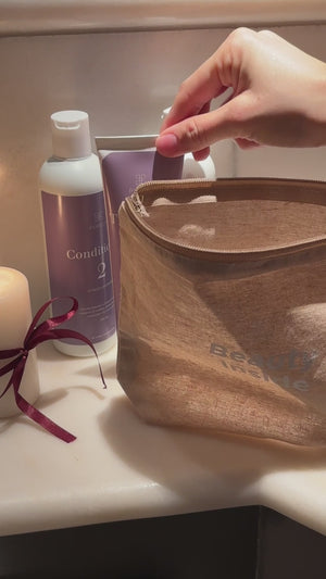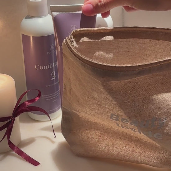 I den praktiske Purely Beauty Pouch kan du pakke helt op til tre 300 ml shampoo, conditioner eller andre nødvendigheder. Så du behøver ikke holde dig tilbage, når du vælger produkter, du vil lægge i den.
