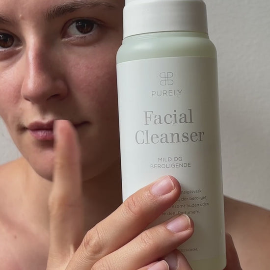 Facial Cleanser: Den parfumefrie og skummende ansigtsrens er en perfekt start på din rutine. Med sine milde sulfatfrie vaskeaktive stoffer og kamilleekstrakt, har ansigtvasken en beroligende og plejende effekt på huden helt uden at udtørre. Den er derfor særlig god til dig med sensitiv hud.