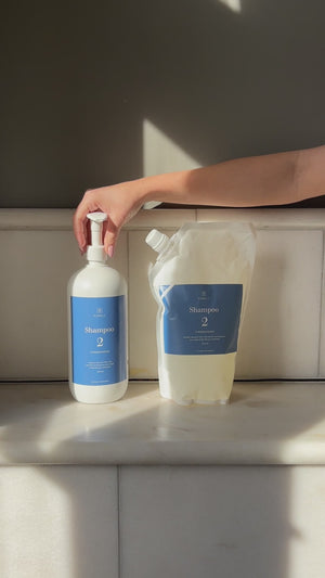 Shampoo 2 er en dybderensende shampoo, men bestemt ikke skrap. Den har en behagelig afrensende effekt, der sikrer at alle rester af hårprodukt, fedt og snavs vaskes helt væk, samtidig med at pH stadigvæk er lav, så du får en skånsom vask og din hovedbund ikke lider overlast.