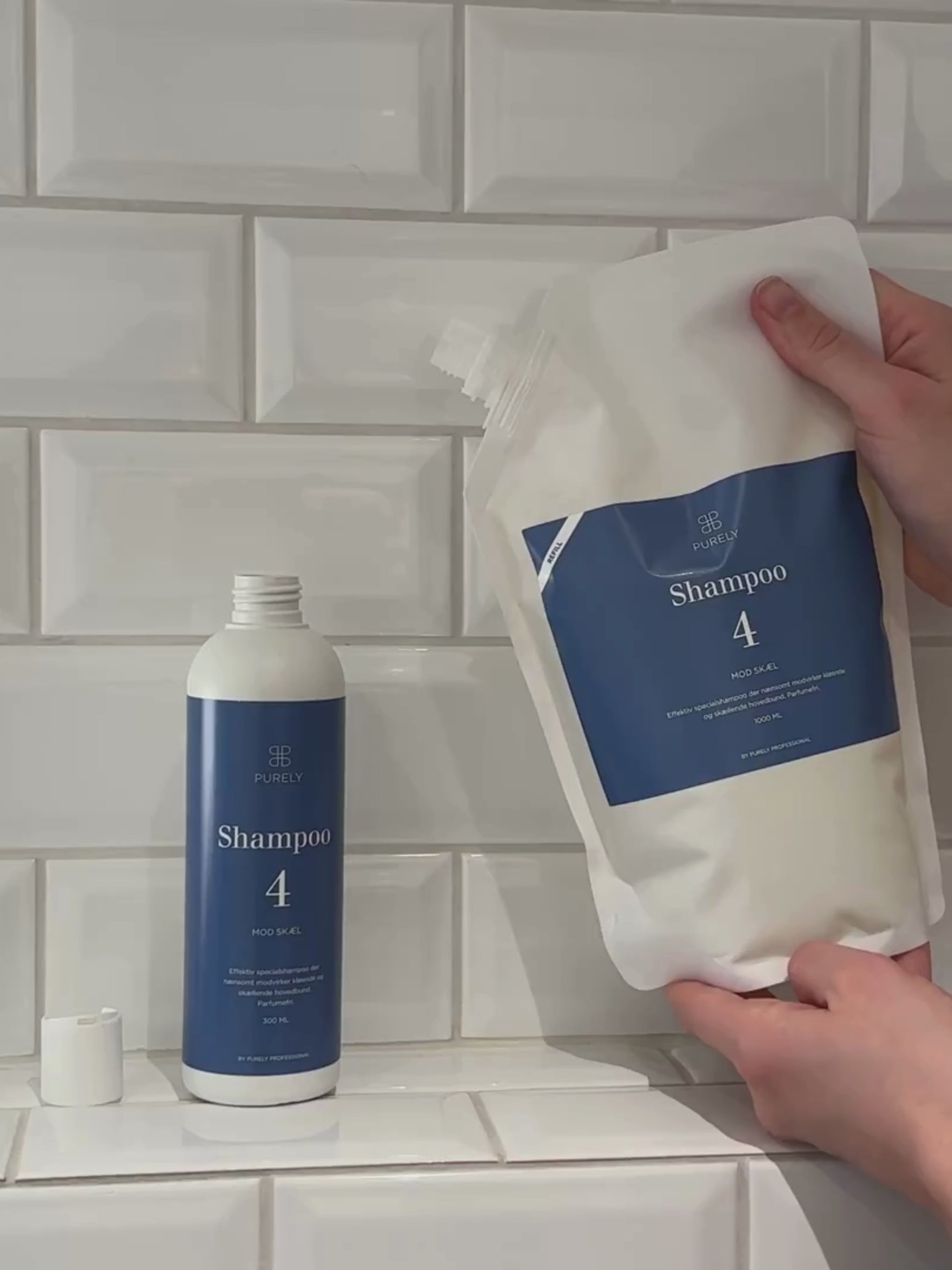 Med en 1000 ml refill pose kan du genfylde dine flasker, uanset om du har 300 ml eller 1 liter størrelsen derhjemme. Når du vælger at genfylde dine flasker, sparer du på mængden af emballage, der anvendes til produktet. Refill poserne, der kun vejer 24,5 g, er fremstillet i monomateriale (PE) og kan derfor affaldssorteres som plast.