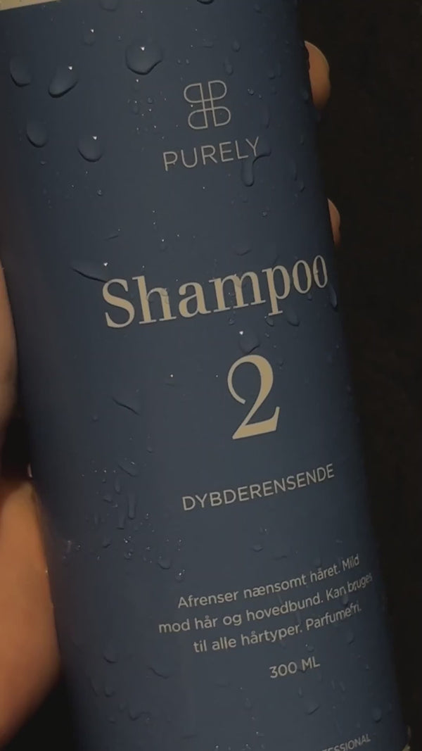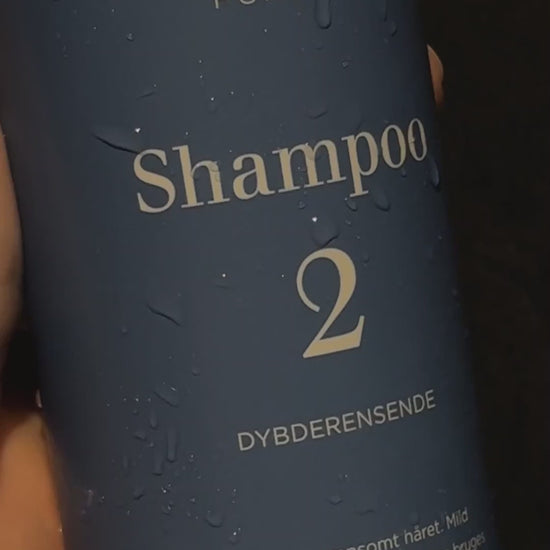 Shampoo 2: Dybderensende shampoo med en behagelig afrensende effekt, som sikrer at alle rester af hårprodukt, fedt og snavs vaskes helt væk, så håret efterlades friskt og løftet. Shampooen har samtidig en hud- og hårvenlig pH-værdi, så din hårvask forbliver skånsom og din hovedbund ikke lider overlast.
